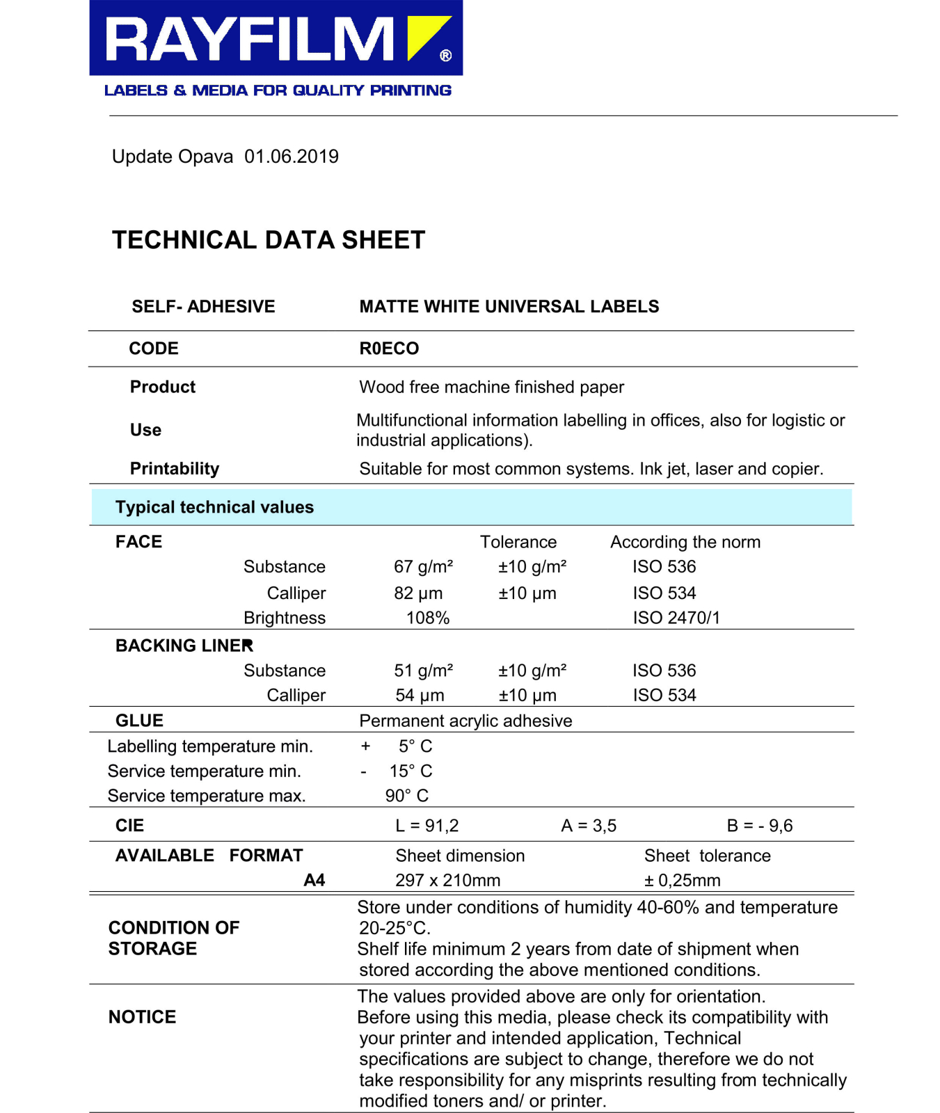 Rayfilm Etich 105x42.4 14buc/A4 1000/top ECO mata, uz univ Rayfilm